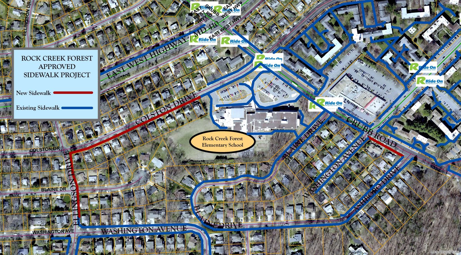 The Rock Creek Forest sidewalk proposal was partially approved on September 30, 2021. The approved sidewalks were constructed during the Summer of 2022.