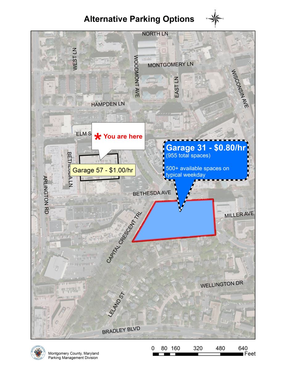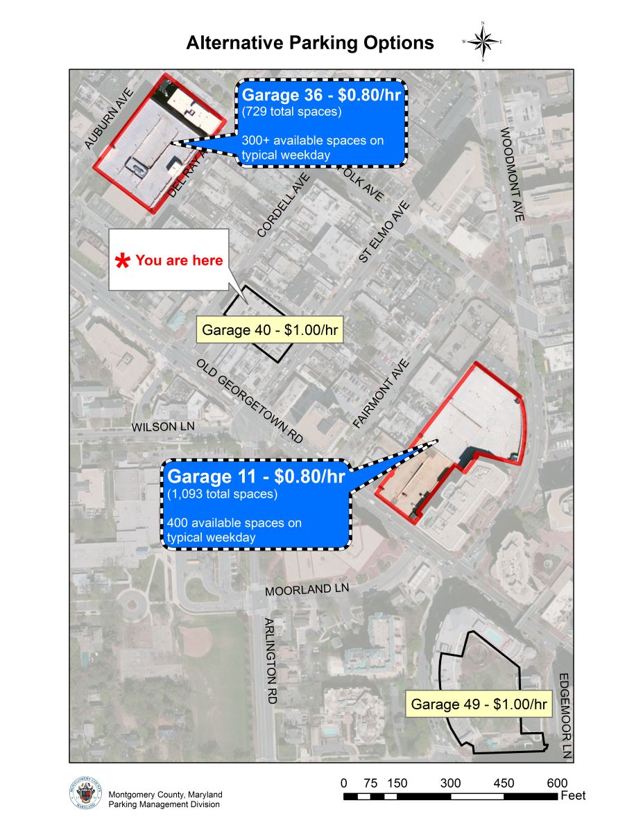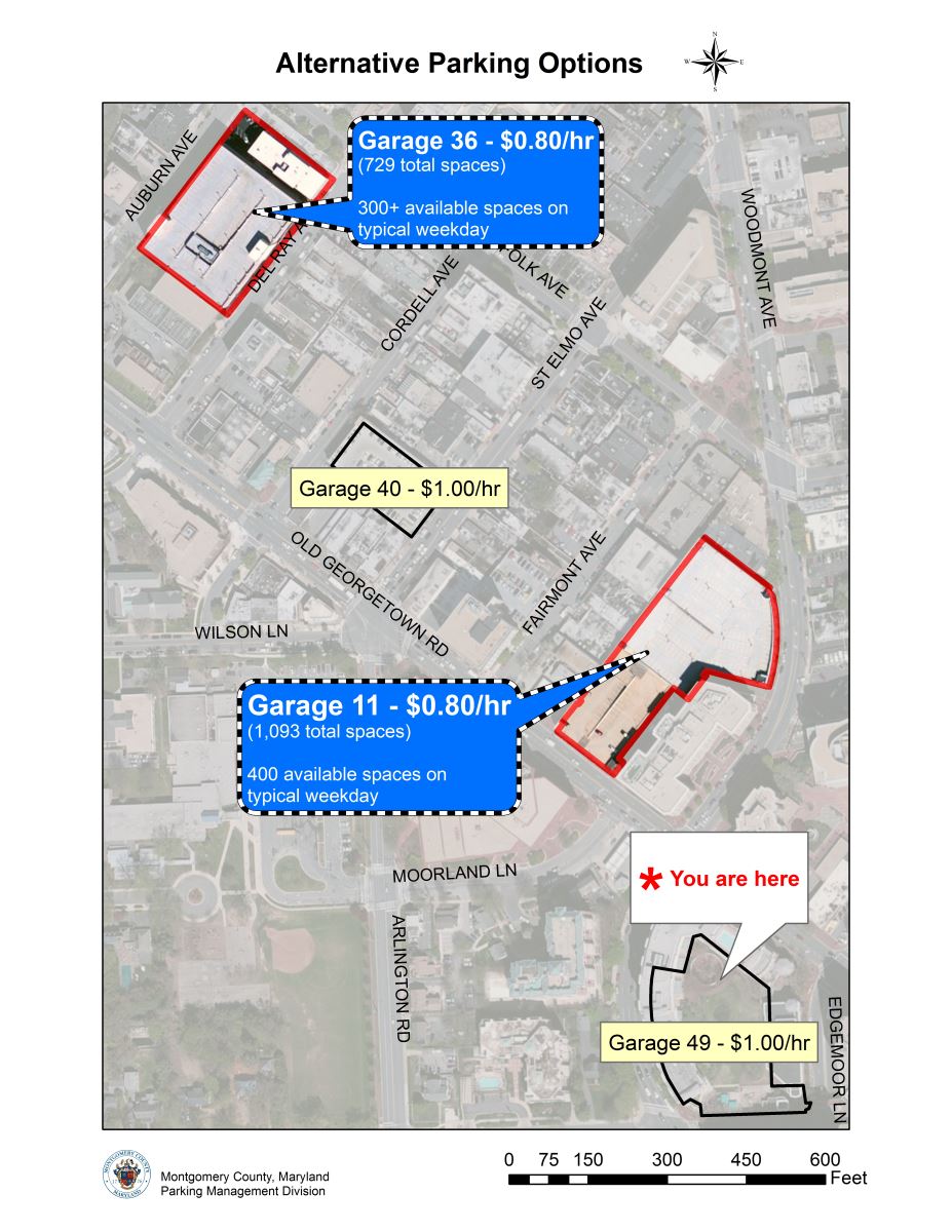 The Division of Parking Management routinely collects garage utilization data through manual counts and integrated car counting systems. Garage 40, 49 and 57 have been identified as “high demand” garages. Long-term parking spaces at these “high demand” garages average 97% occupied during peak periods. Garages 11, 31, 36, and 42 have been identified as "underutilized garages." Long-term parking spaces at these "underutilized" garages average 54% occupied during peak periods. All "high demand" parking garages are located less than 750 feet of a public parking garage that is classified as "underutilized".