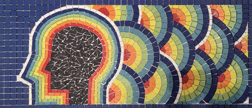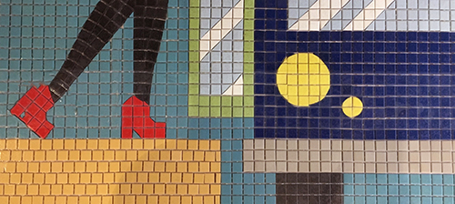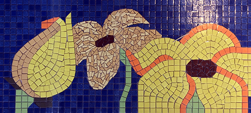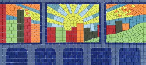 Inlaid mosaics on the station platforms were created by local student apprentices with Arts on the Block.