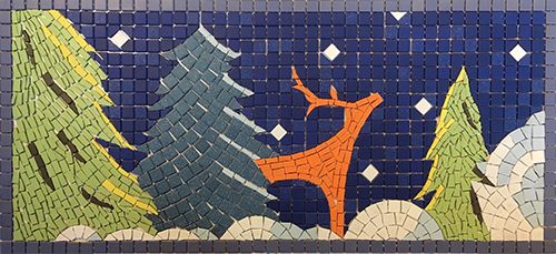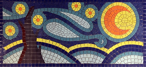 Mosaic of tree in the style of Van Gogh's Starry Night