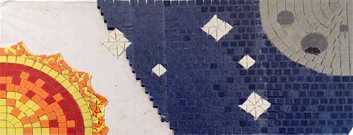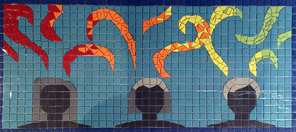 Sun and Waves,  >Designed by Alan E. & Isa F.; Created with Alejandra, Lydia W., and Angela C., Location: Tech Road Northbound.