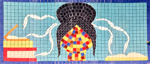 Head Swirls , Designed by Alejandra V., Created with Doria W., Elena C., Isa F., Ian H., Atiqa K., Victor M., and Sasa A., Location: Four Corners Northbound.