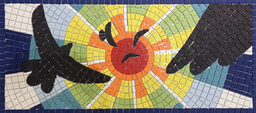 Rising Sun, Designed by Mariam B., Created with Kimberly R., Devin V., Emanuel C., Ruqayyah A., and Elena P., Location: White Oak Transit Center Northbound.