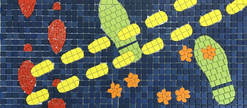 Footprints, Designed by Michael W.., Created with Dani G., Mara D., Gabe M, and Olivia M.; Location: White Oak Transit Center Southbound.