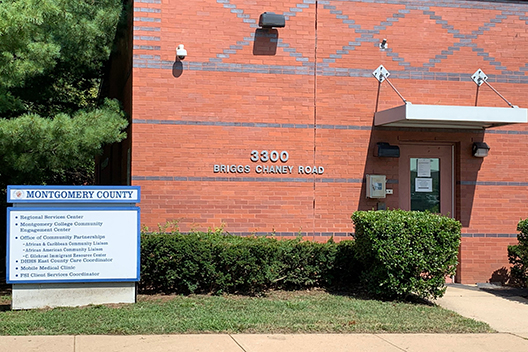 Parking is available in the Gaithersburg Library parking lot and is accessible to people using wheelchairs and scooters.