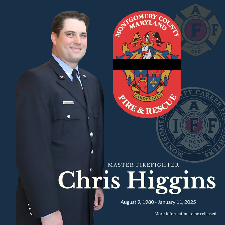 Quiero ofrecer mi más profundo pésame a la familia, seres queridos y colegas de Christopher Higgins tras su trágica muerte en el cumplimiento del servicio. Un veterano de 23 años de los Servicios de Bomberos y Rescate del Condado de Montgomery, el bombero maestro Higgins no solo fue un hábil bombero, sino un querido mentor y amigo de sus colegas. Lo extrañaremos mucho.