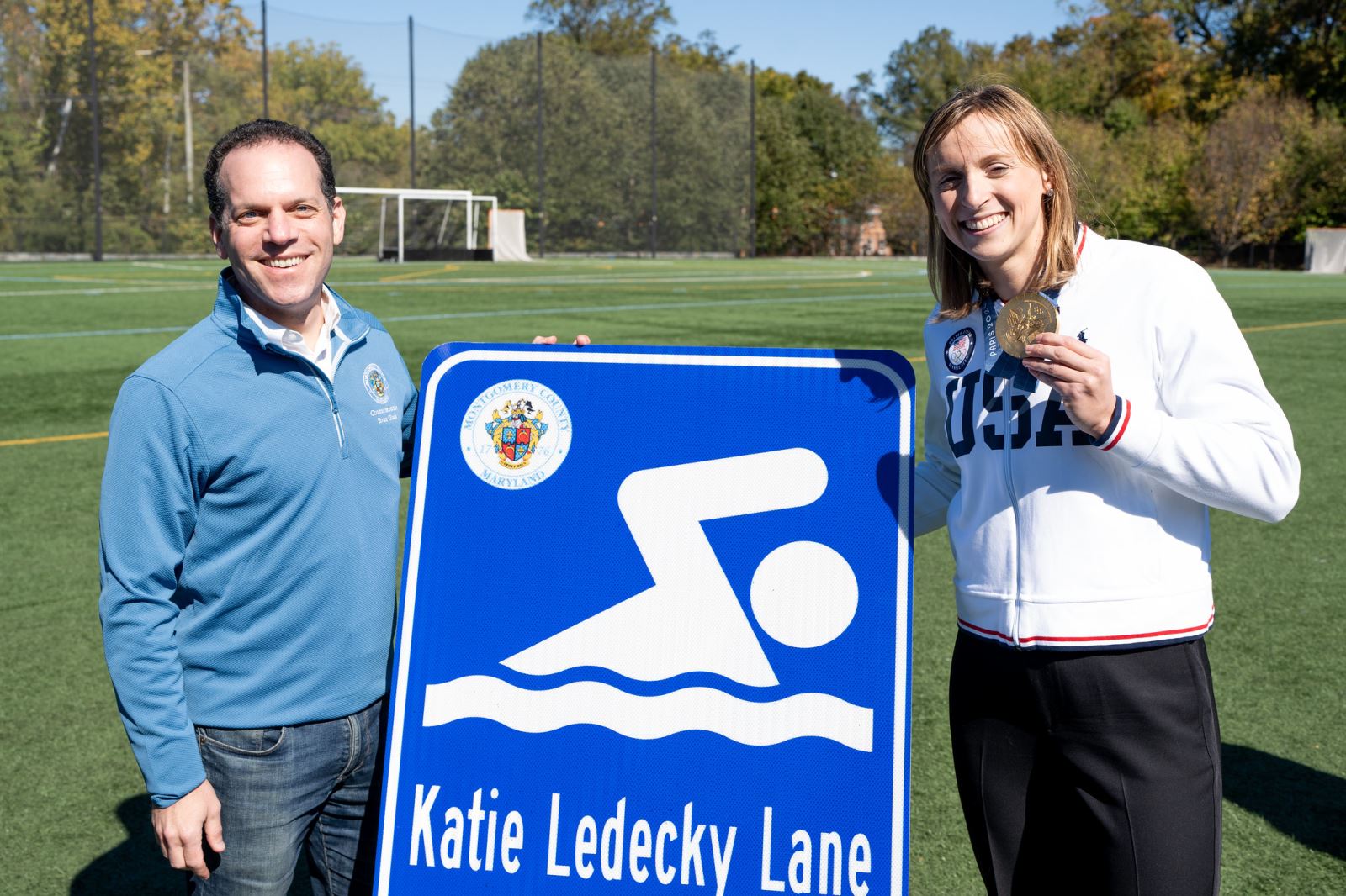 Me emocionó hacer un reconocimiento a la nativa de Bethesda cuando rebautizamos oficialmente la calle que se encuentra frente a su alma mater Stone Ridge School of the Sacred Heart. Celebramos el increíble trabajo de Katie dentro y fuera de la piscina, como modelo a seguir y como filántropa.