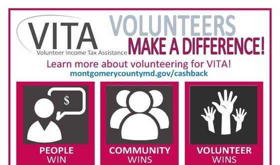 La Agencia de Acción Comunitaria del Condado de Montgomery está reclutando voluntarios para ayudar a brindar asistencia durante la temporada de impuestos el siguiente año, de enero a mediados de abril. El programa de Asistencia Voluntaria para la Declaración de Impuestos (VITA, por sus siglas en inglés) ayuda a los residentes de bajos ingresos a acceder a créditos fiscales críticos: el año pasado, VITA ayudó a más de 2,000 hogares en el condado, que incluyeron a titulares de un Número de Identificación Personal del Contribuyente (ITIN, por sus siglas en inglés), a obtener un total neto de $8.6 millones.
