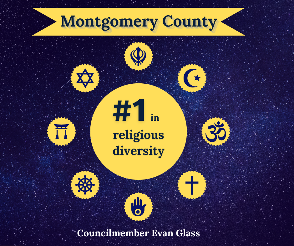 De acuerdo con un censo en 2023 realizado por el Instituto Público de Investigación de Religión, el Condado de Montgomery es el condado con mayor diversidad religiosa de Estados Unidos. Mientras continuamos celebrando la temporada de fiestas, este reconocimiento destaca aún más porque el Condado de Montgomery es un lugar excelente para que todos vivan, trabajen y formen una familia.