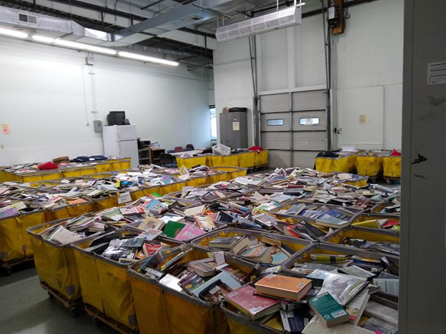 Libraries also analyzed recurring backlogs in the sorting room of their warehouse. Adults with Autism, in collaboration with CSAAC, a local non-profit, do the sorting.