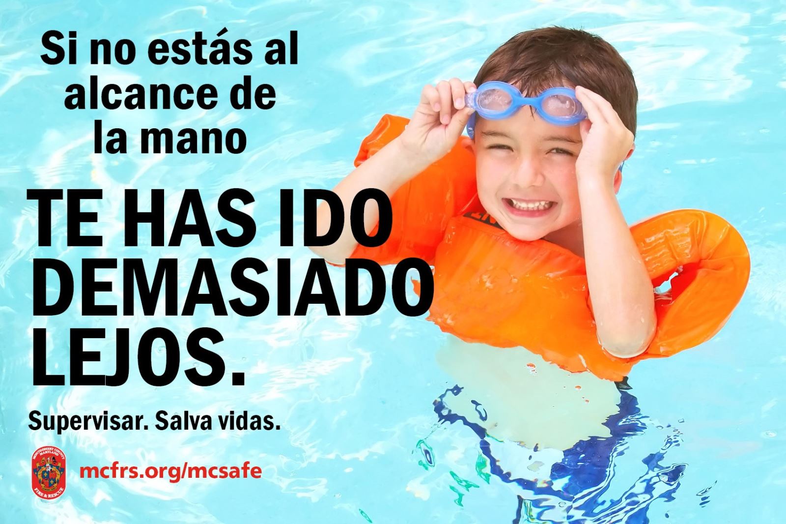 El ahogamiento es la principal causa de muerte no intencional relacionada con lesiones en niños de 1 a 4 años y la tercera causa principal entre los niños de 5 a 18 años. Para los niños menores de 5 años, el 87% de las muertes por ahogamiento ocurren en piscinas y spas domésticos. La investigación de la Campaña Nacional de Niños Seguros muestra que casi 9 de cada 10 niños entre 1 y 14 años que se ahogaron estaban bajo supervisión cuando murieron. MCFRS recomienda tener siempre un "Observador del agua" designado (casi como un conductor designado). Los ahogamientos a menudo ocurren cuando una persona asume incorrectamente que otra está mirando. Olvídese de las distracciones cuando esté de "servicio de salvavidas" y sea el vigilante designado del agua. Esté atento y mirando en todo momento.