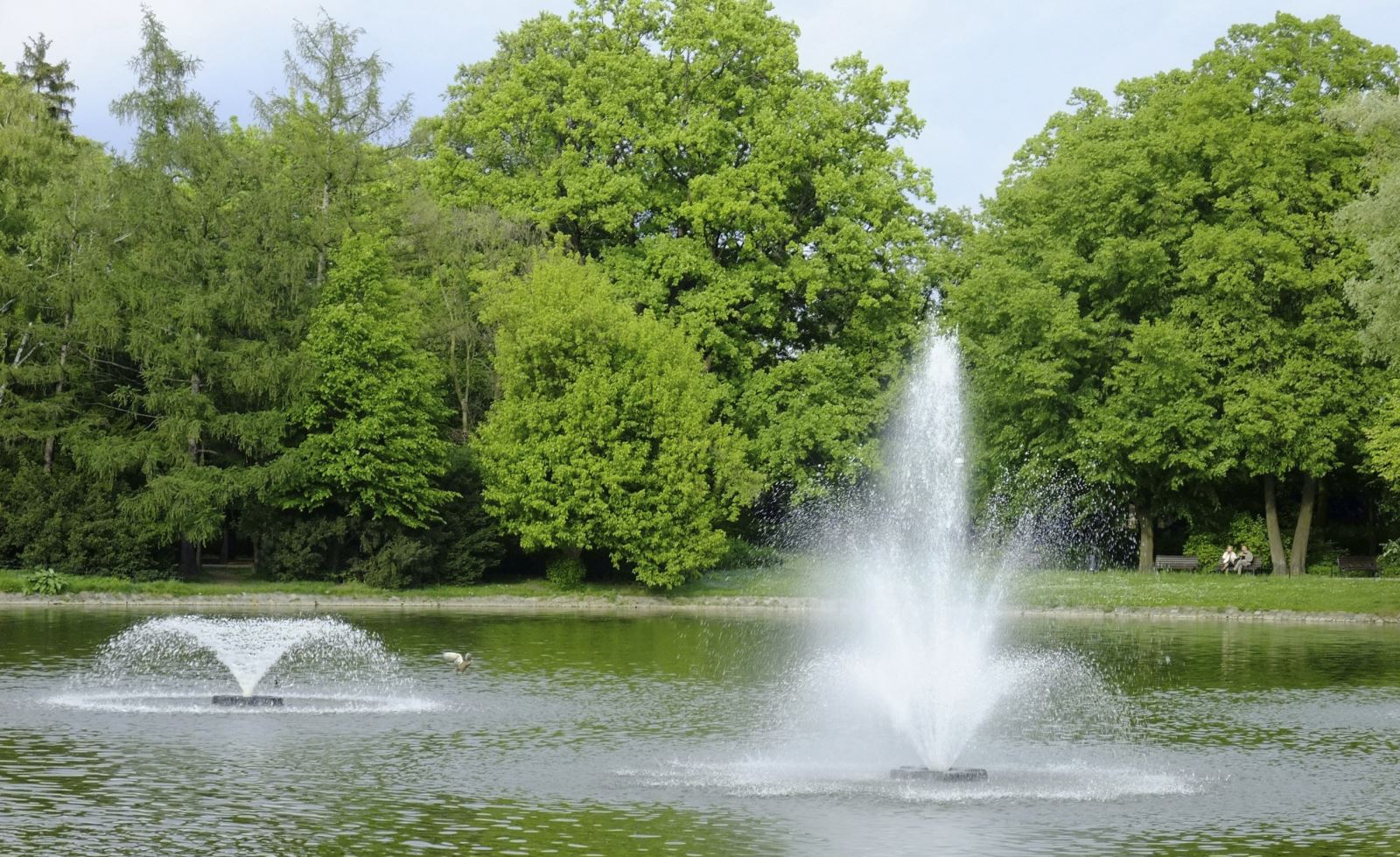 Mosquitoes do not breed in moving water. Fountains, like the one featured here, keep the water in wet ponds moving to prevent mosquitoes.