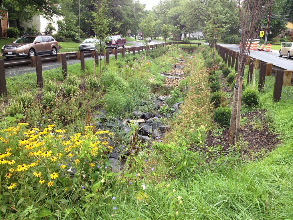 Bioretention garden along Dennis Avenue drains in less time than it takes for mosquitoes to breed