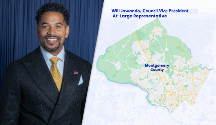 Council Vice-President Will Jawando is one of four at-large members of the Montgomery County Council, elected by voters from across the entire county. Will chairs the Education & Culture Committee and sits on the Planning, Housing, and Parks Committee.