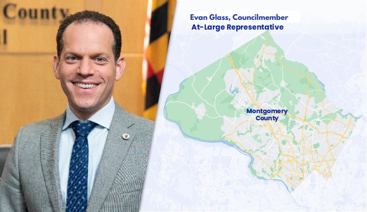 Councilmember Evan Glass is one of four at-large members of the Montgomery County Council, elected by voters from across the entire county. Evan is chair of the Council's Transportation and Environment Committee and a member of the Economic Development Committee.