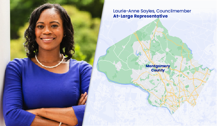 Councilmember Laurie-Anne Sayles is one of four at-large members of the Montgomery County Council, elected by voters from across the entire the County. Laurie-Anne is a member of the Council’s Economic Development Committee and Health and Human Services Committee.