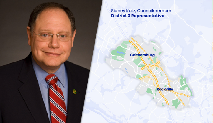 Councilmember Sidney Katz represents District 3, which includes the municipalities of Gaithersburg and Rockville in central Montgomery County. Sidney is Chair of the Council’s Public Safety Committee and a member of the Government Operations and Fiscal Policy Committee.