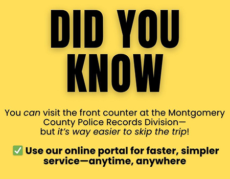 You can visit the front counter at the Montgomery County Police Records Division - but it's way easier to skip the trip!