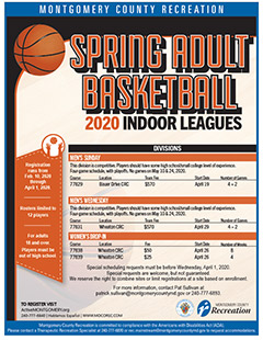 Montgomery County Recreation offers several basketball leagues for varying age levels, for men, women and drop in. Leagues are available in the fall, winter and spring/summer.