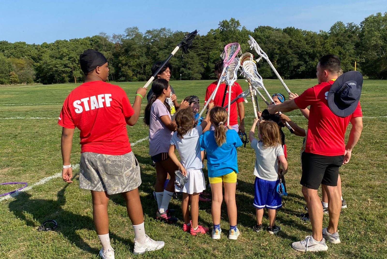 Rules: We play with a modified set of rules similar to girls' lacrosse but with boys' lacrosse sticks. This allows for both boys and girls to participate!