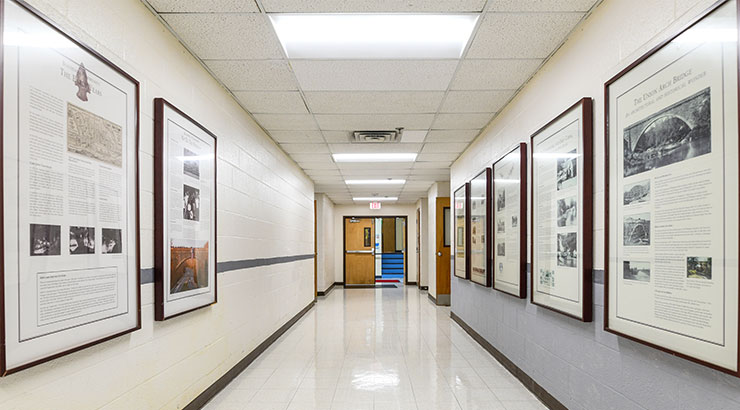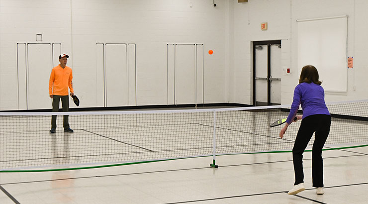 The surrounding outdoor area includes fields, hiking trails, tennis and basketball courts and two sets of play equipment.