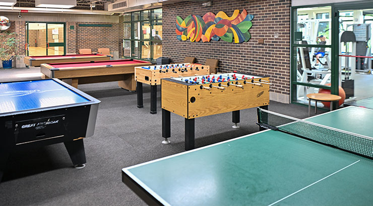 Outdoor space adjacent to the center includes tennis and basketball courts and a children’s play area.