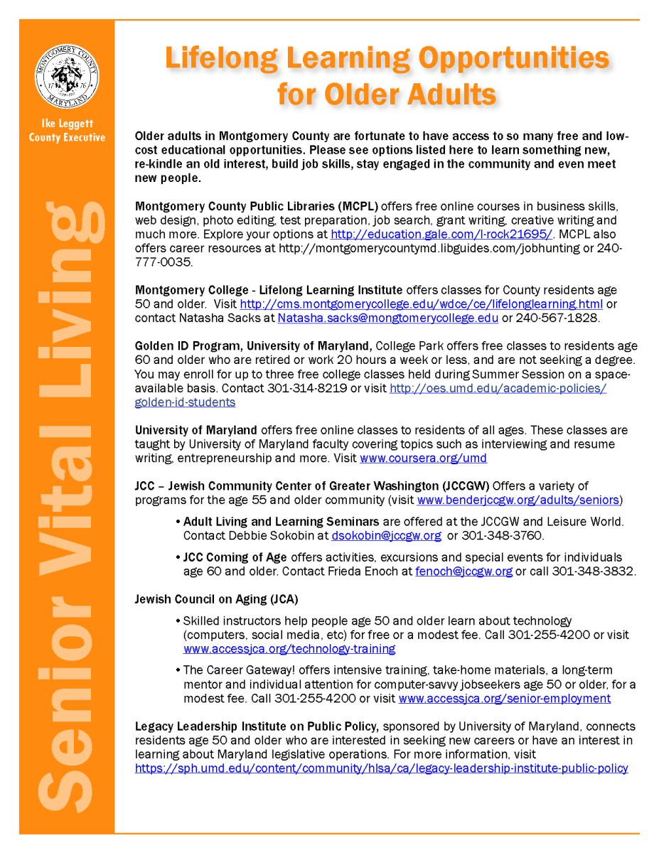 - Highlights of County’s Executive Ike Leggett’s Senior Accomplishments ( pdf)