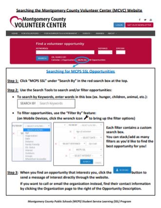 - The following quick links will also take you to all nonprofit-hosted SSL opportunities currently posted on the Montgomery County Volunteer Center website:
